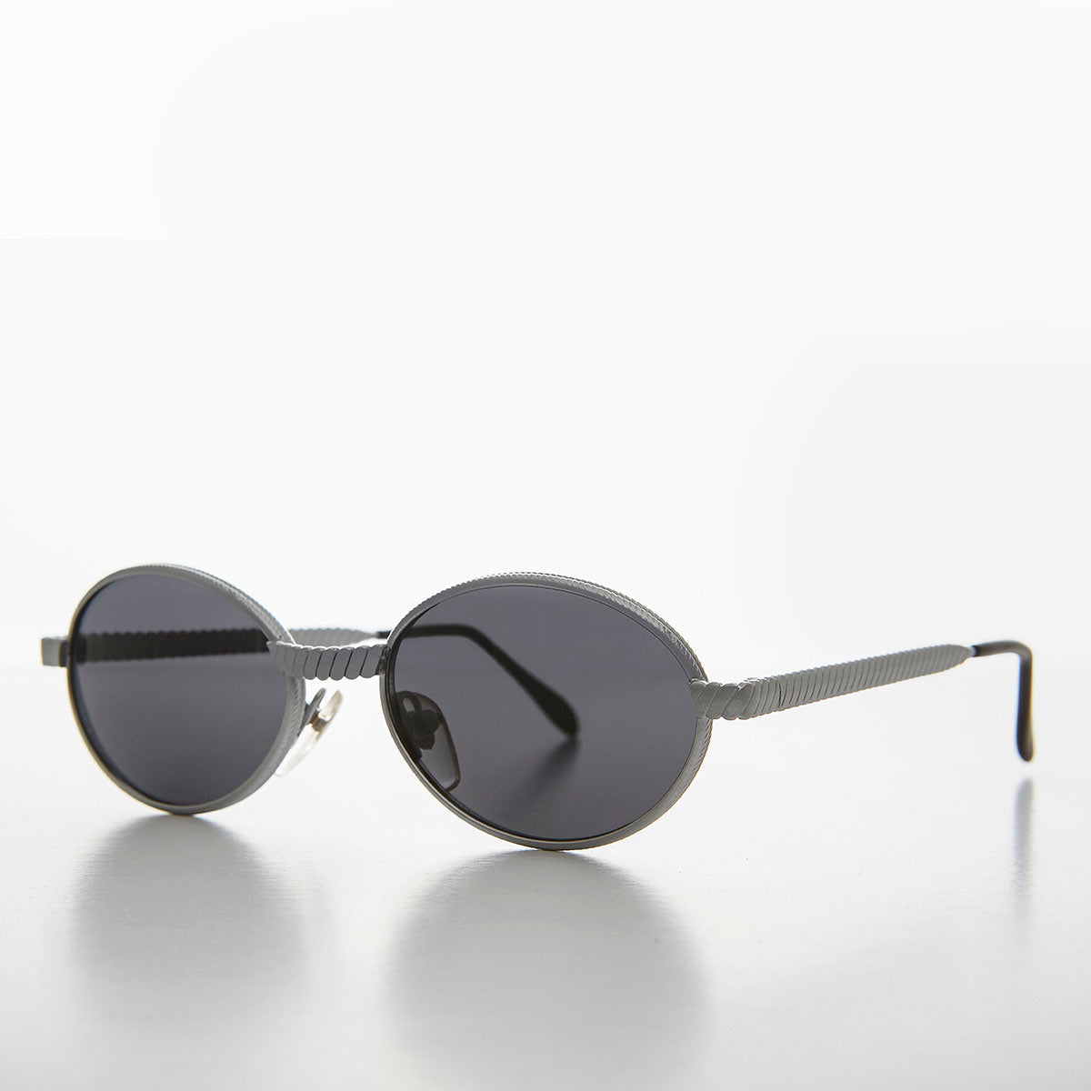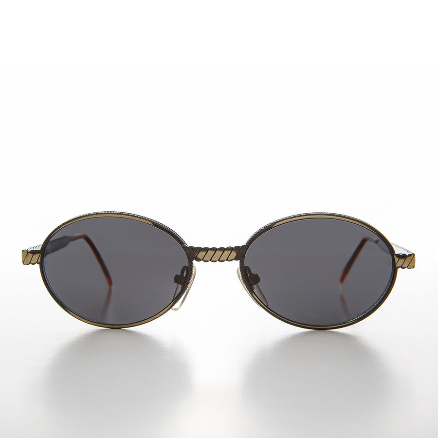 Oval 90s Vintage Sunglass with Metal Rope Design - Snuff