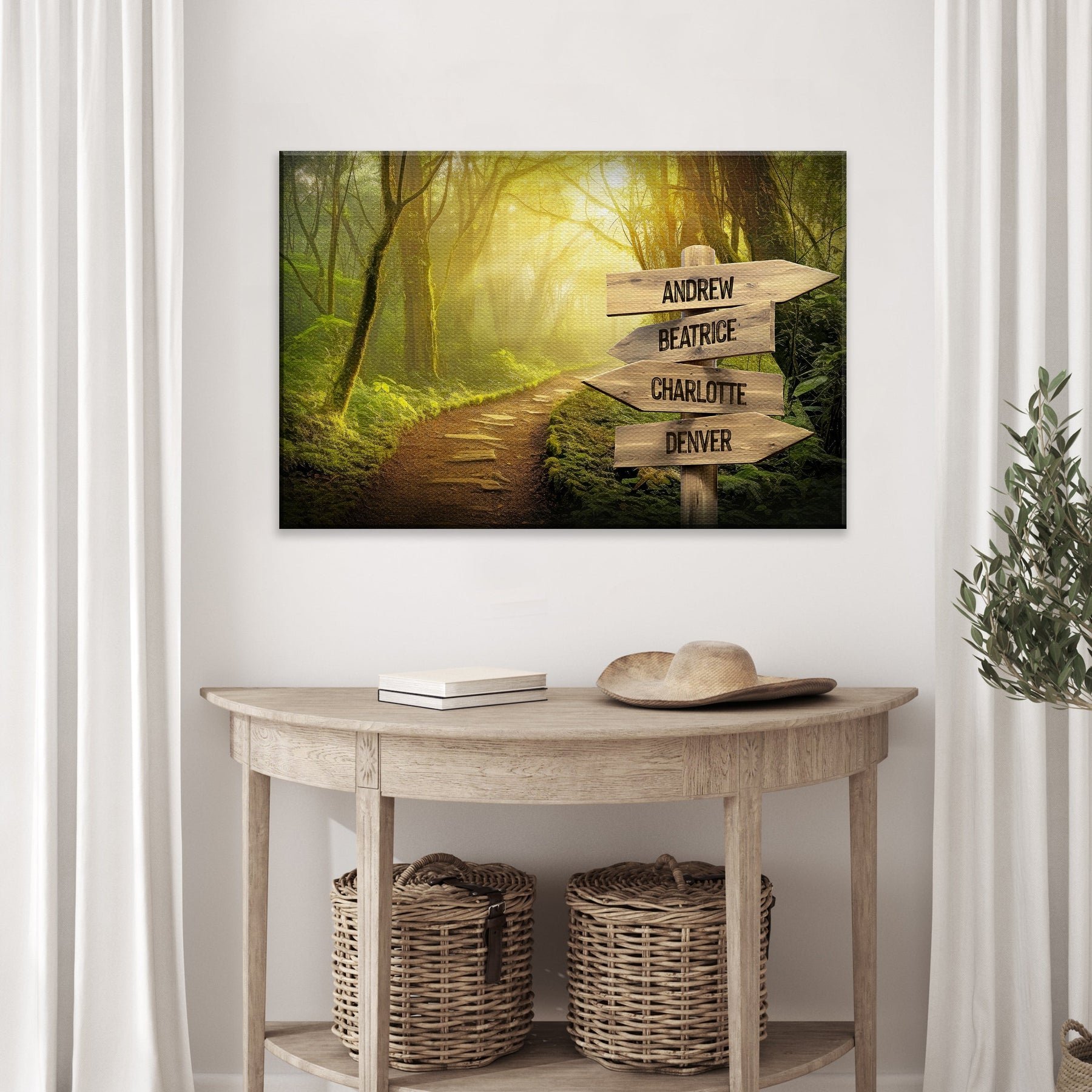 You can customize the Family Names canvas print with your choice of words and names, as well as the image you want in the background. The fonts used and the color scheme are also customizable, so you can have something entirely different.