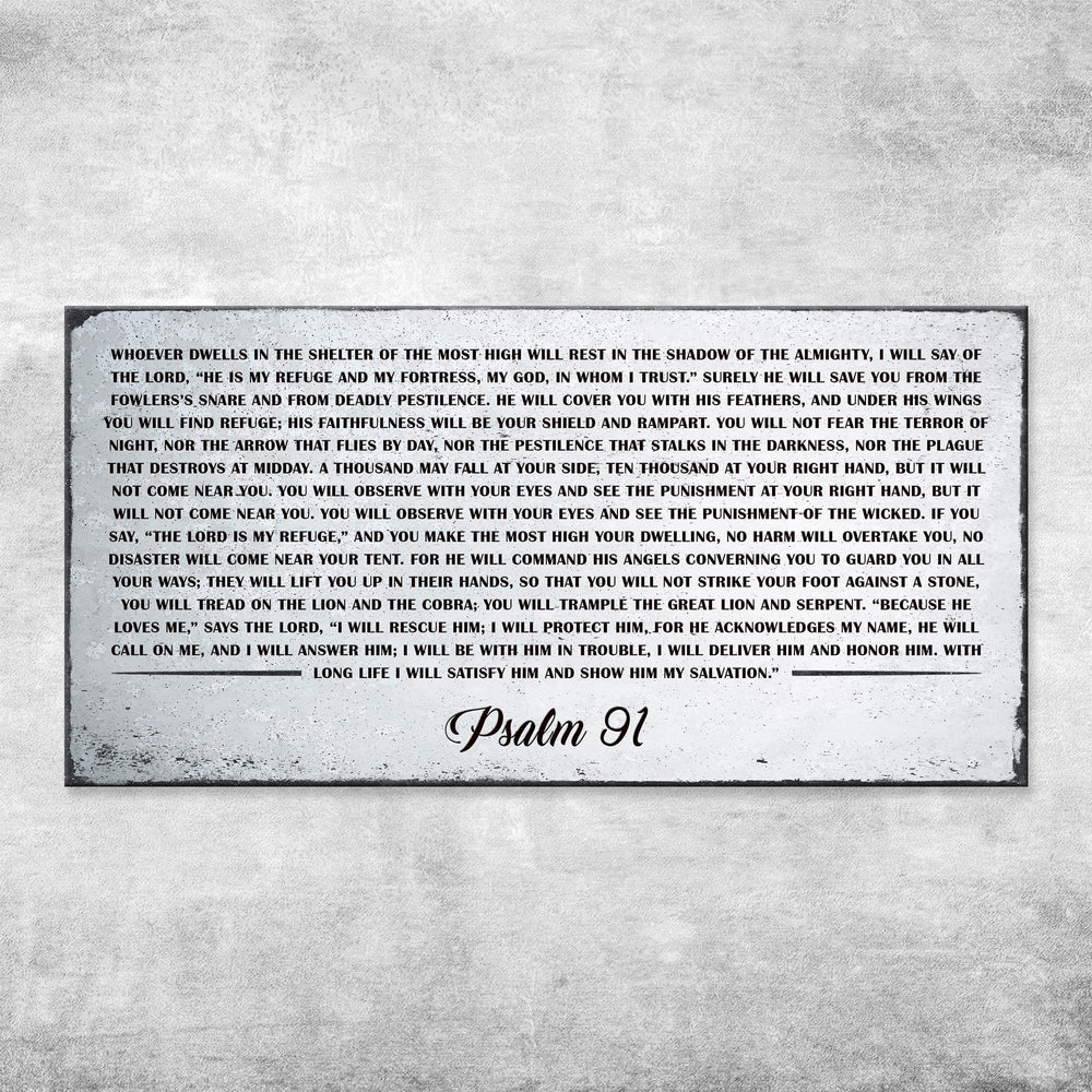 Psalm 91 - Whoever Dwells In The Shelter Of The Most High Sign is a beautiful statement piece that would look great in any home. Aside from its good looks, this sign has a very important message. The Bible verse from Psalms that it references is all about protection. It talks about how whoever dwells in the shelter of the highest will be safe from harm.