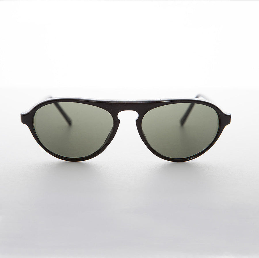 Small vintage flat top sunglass with keyhole bridge. Distinctive and hip style made of quality acetate plastic with optical wire core temples. Optical quality frame.