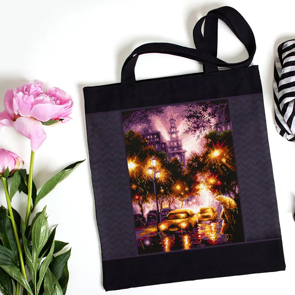 Kit contains: Fabric Zweigart Aida 14 (black), Threads: mouline DMC, Number of Colors:28. Embroidery instructions in English, German, French and Spanish; color symbol scheme. Dimensions: 20*27cm / 7,87*10,63inches