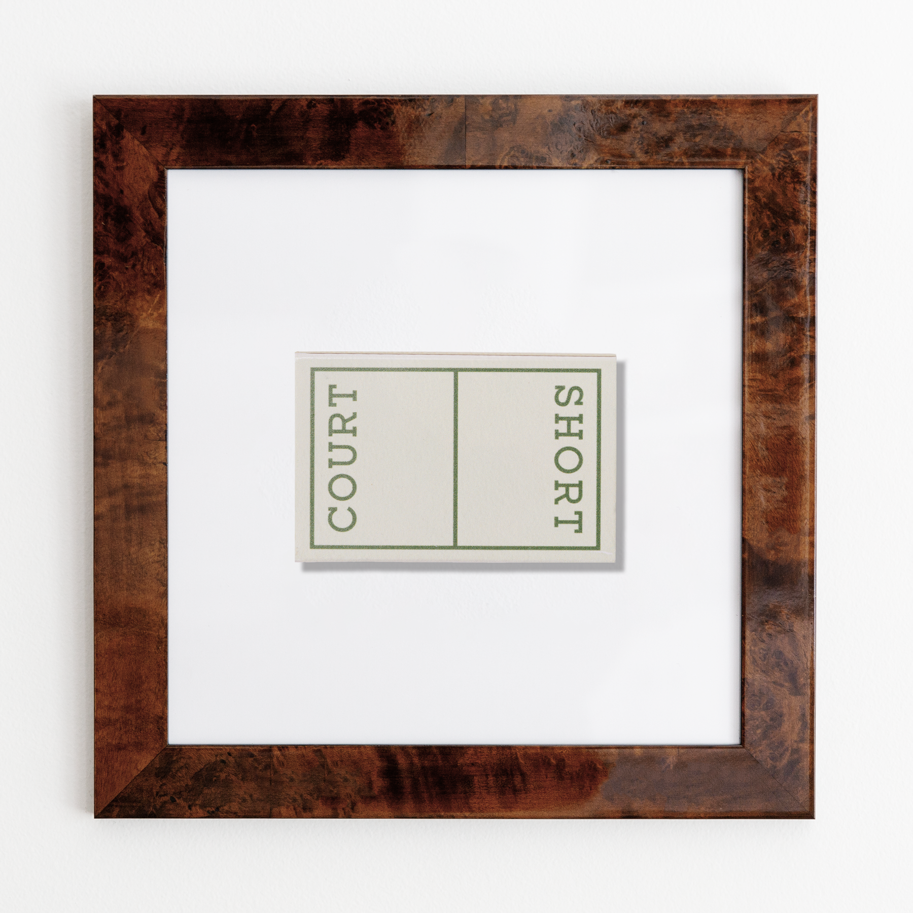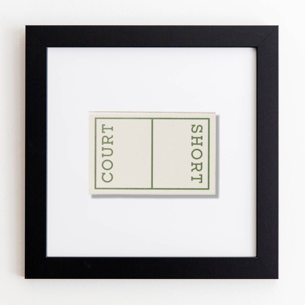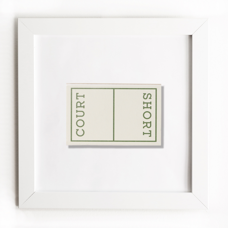 The Short Court print showcases an iconic matchbook design.