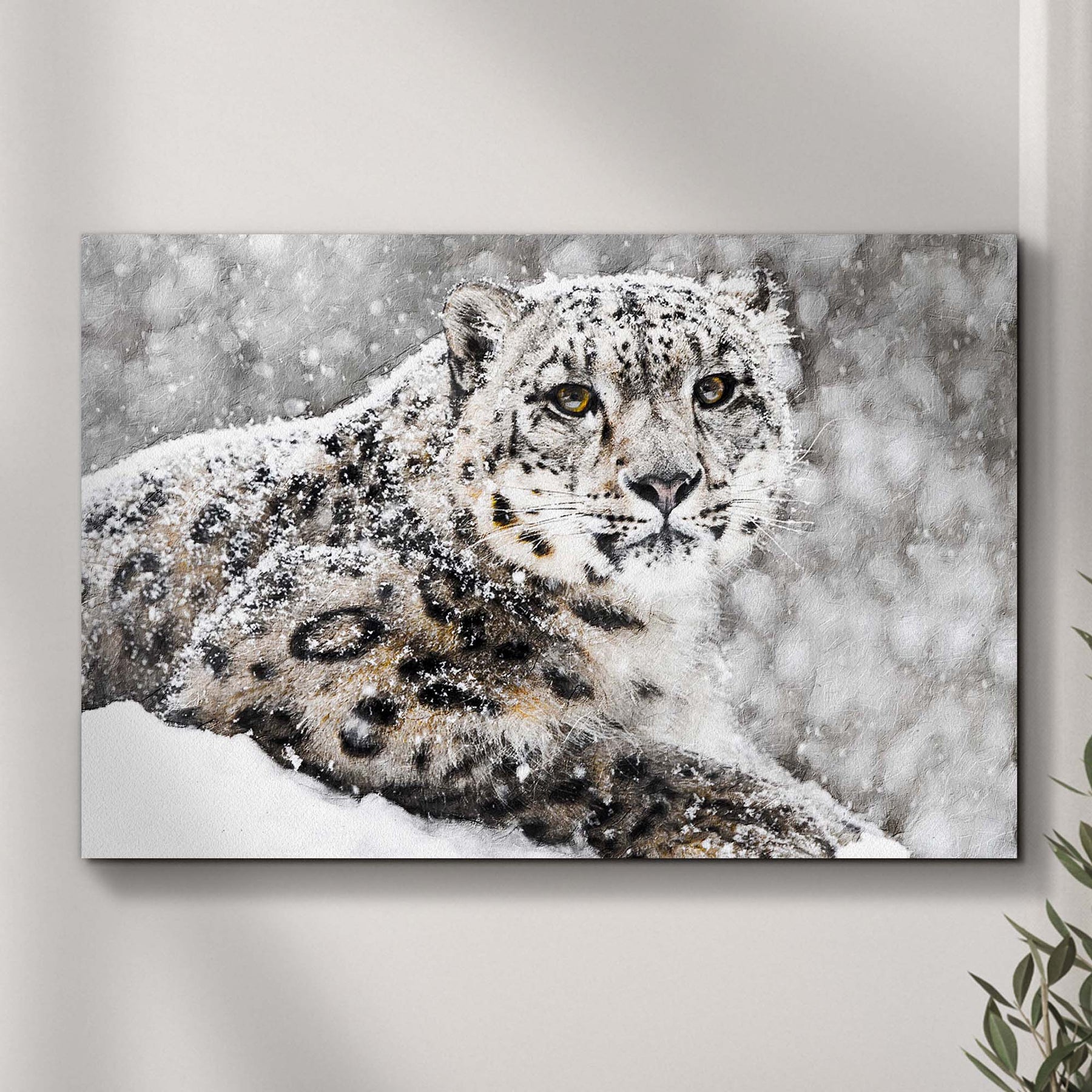 If you're looking for a way to add some flair to your blank walls, look no further than the Snow Leopard In Blizzard Canvas Art. It's a beautiful piece that will make any room pop. This canvas will surely catch the eye of anyone who sees it and will add an artistic touch to any room.