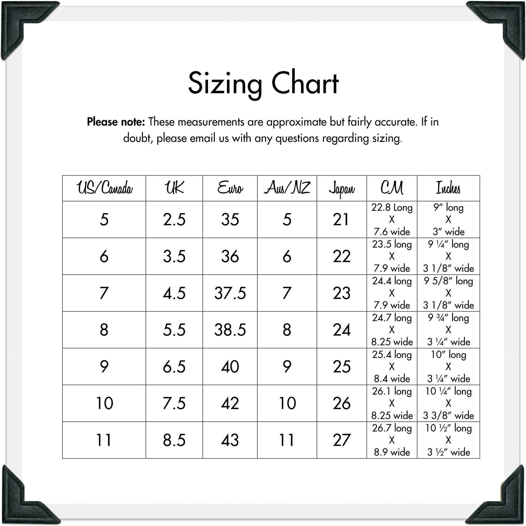 ~If your feet are very narrow in width, please size down.  If your feet are narrow-to-average in width, order your usual size.  If your feet are average-to-wide in width, please size up.
