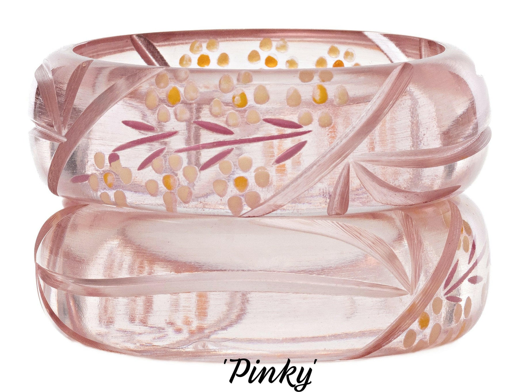 This is our adorable Darling Bangle Collection! Pretty pastel cuffs in 6 delightful colors are hand-carved and painted to create just the right look to wear with absolutely everything!