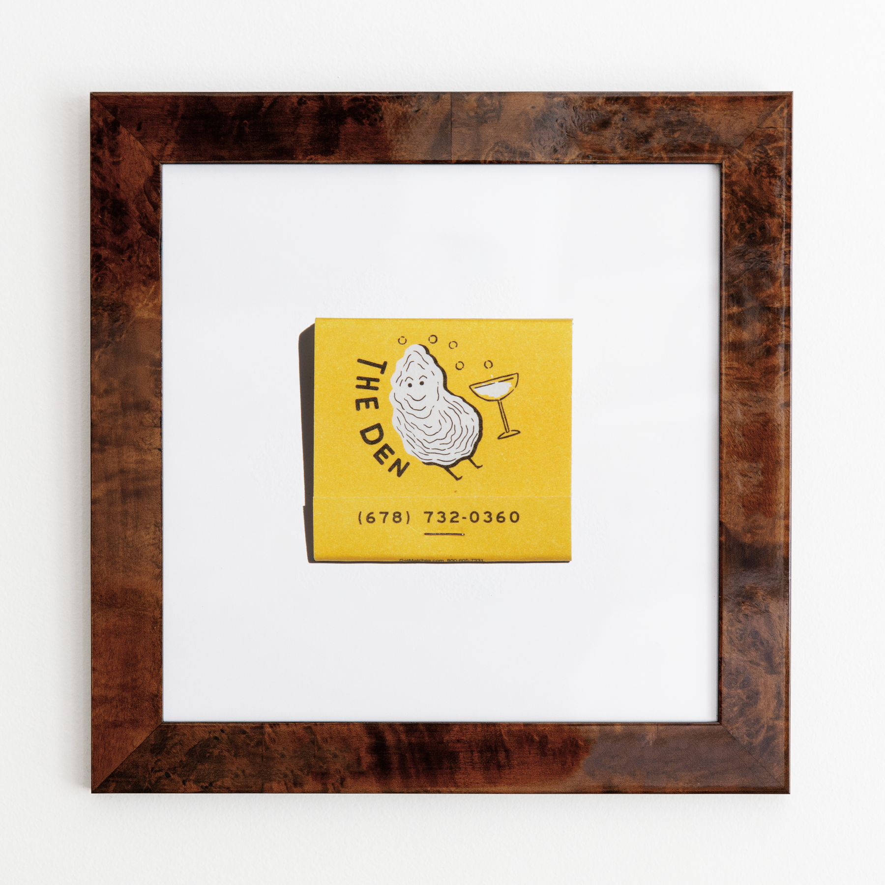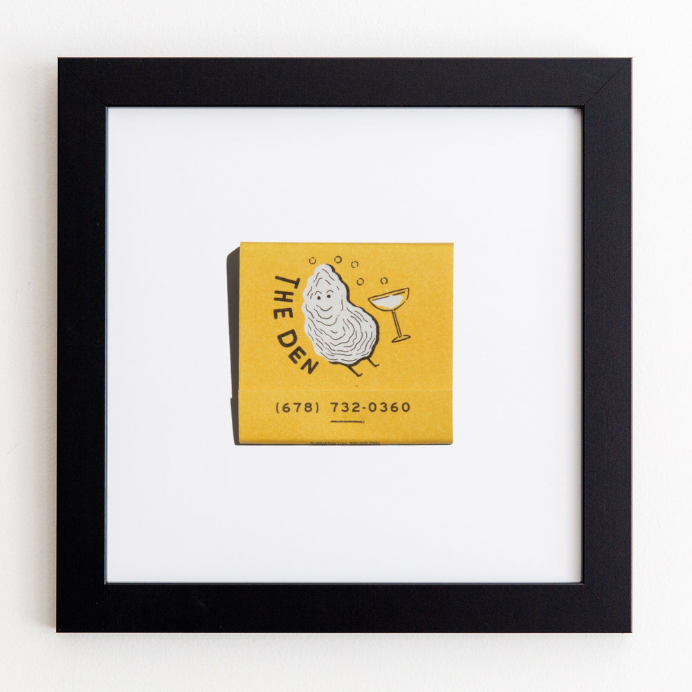 The Den print showcases an iconic matchbook design.