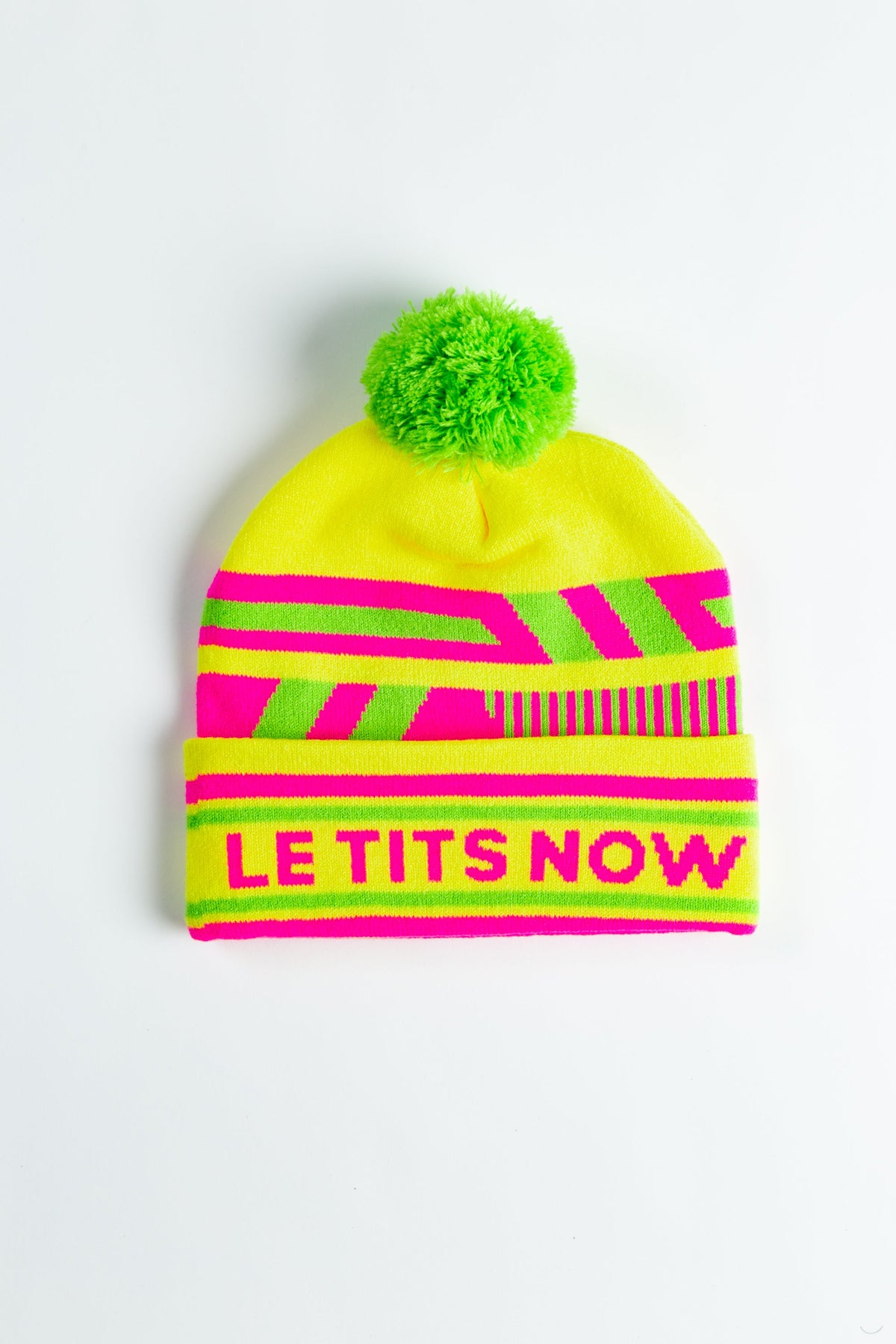 Let it snow with the Le Tits Now retro neon ski beanie for men and women. This vintage inspired beanie is dedicated to keeping your noggin warm while turning heads of everyone on the mountain and at après. Shop now before they're gone.