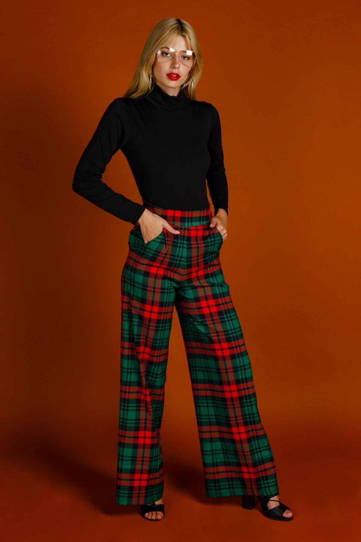 The Lincoln Log Love Lady | Women's Green Plaid Christmas Pants