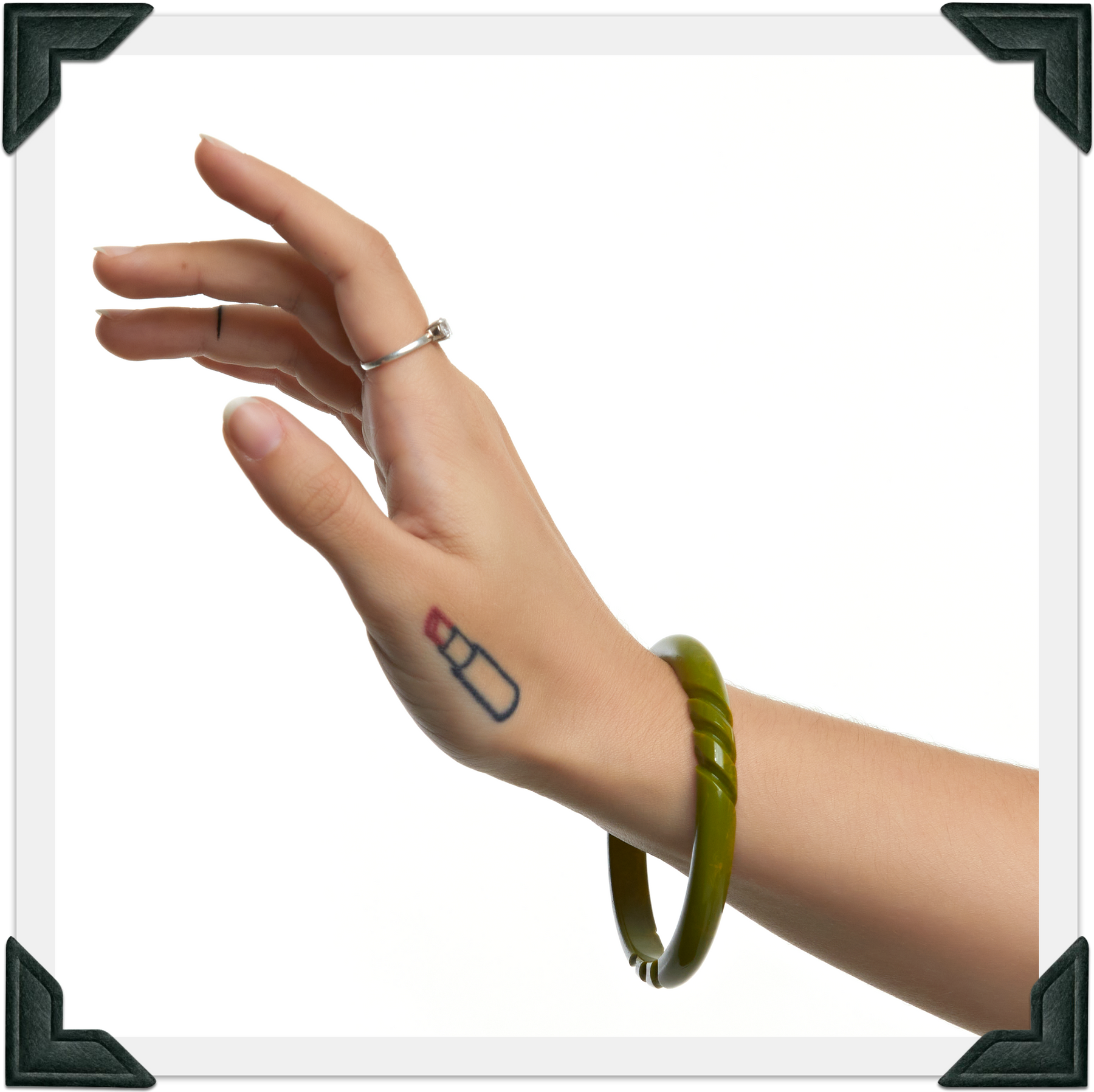 This new Collection features bracelets that are very weighty and highly-carved. They're just like your favorite Bakelite bracelets but Tiki!