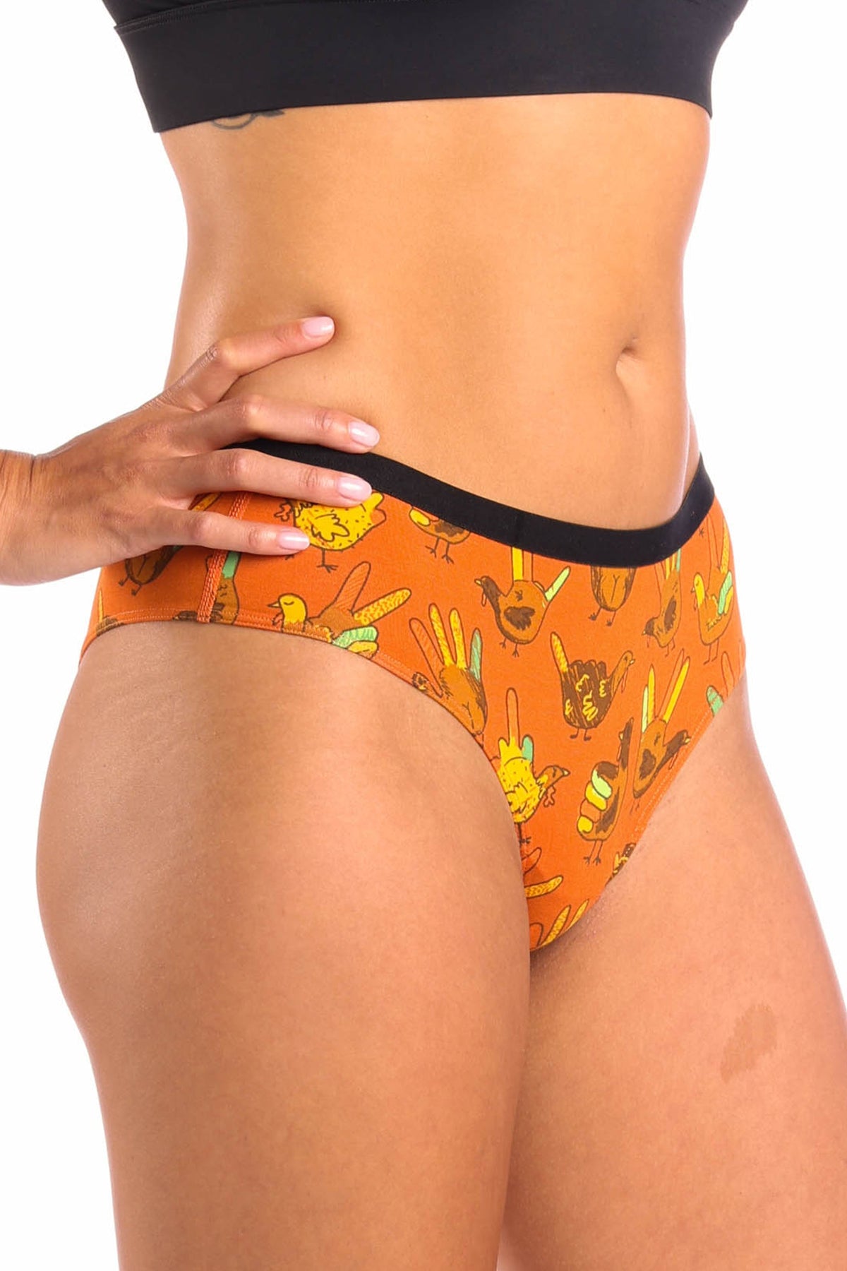 Think drawing hand turkeys is a dumb kids’ activity? Think again. These cheeky undies show off what a hand turkey can look like when you get a little more creative. From middle fingers to that Vulcan hand thing I can’t do, these hand turkeys are definitely worth hanging on the refrigerator.