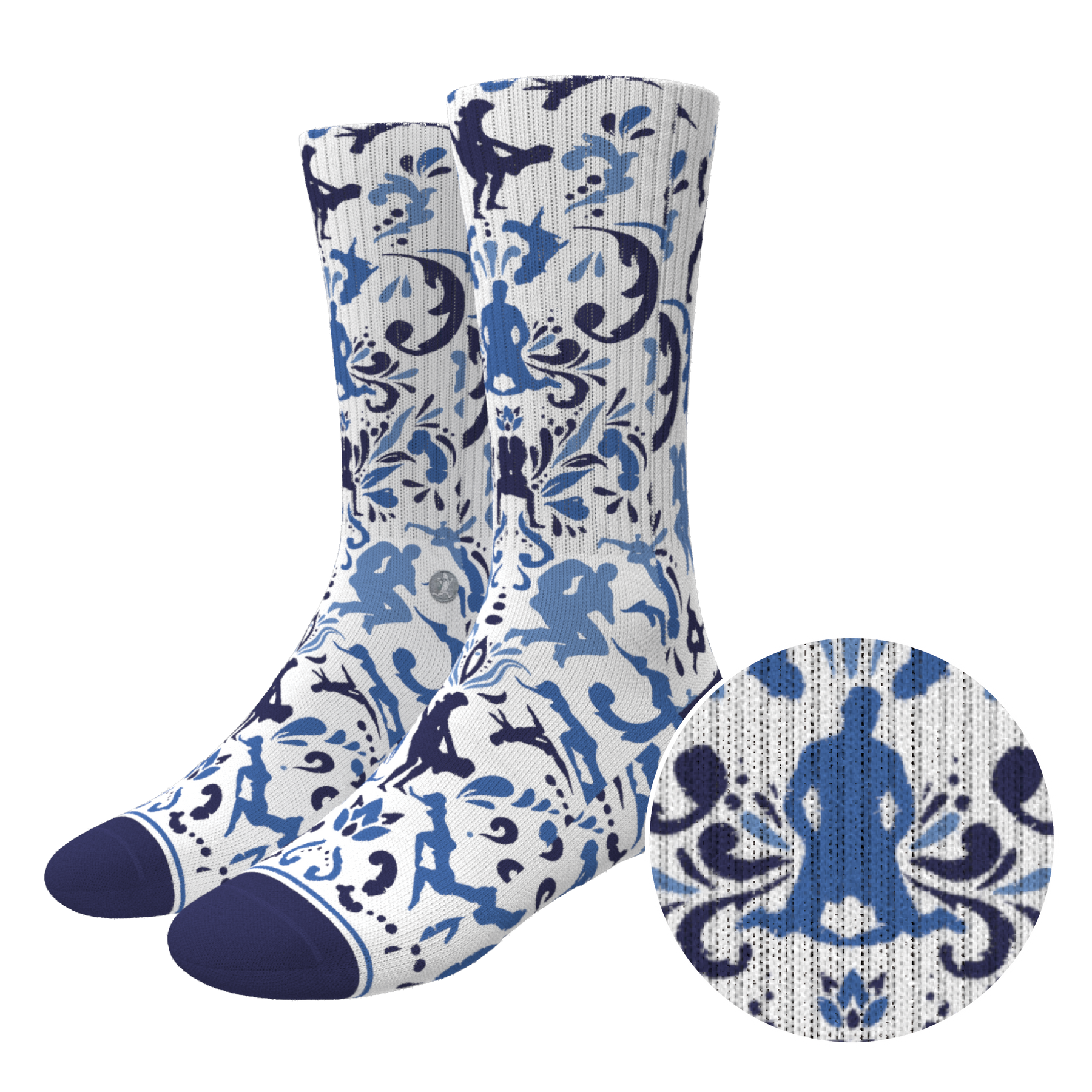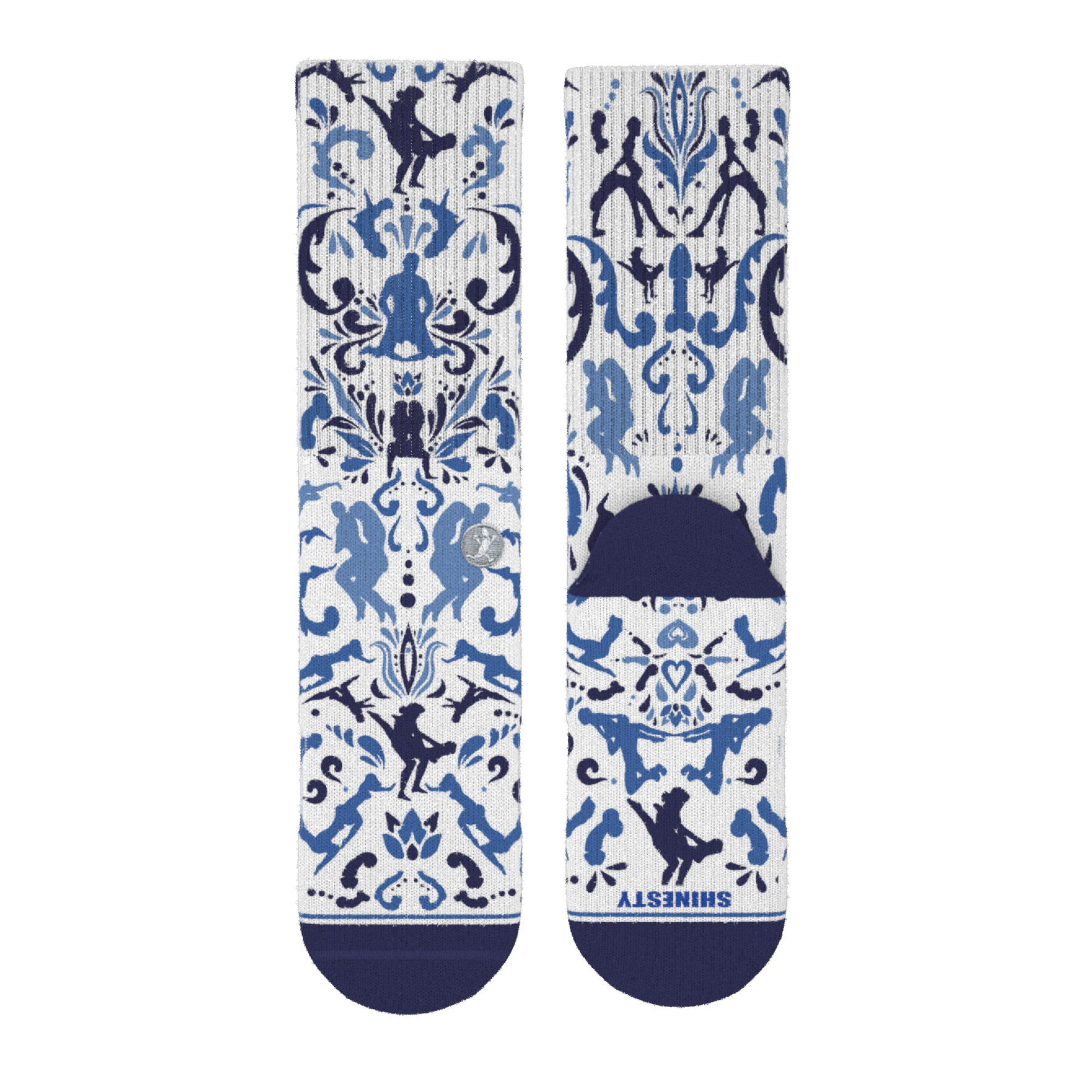 The Risqué Rorschach | Naughty Blue Willow Heel Hammock™ Crew Socks