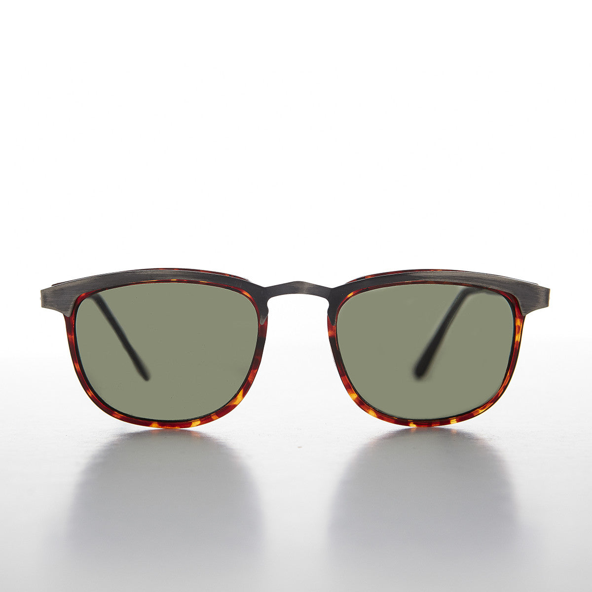 This classic, brow line vintage sunglass is updated by reversing the standard with a metal half frame brown line and acetate base frame. These attractive sunglasses will have you looking stylish in any situation.