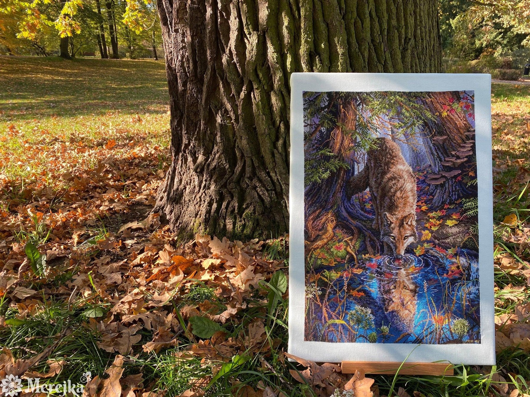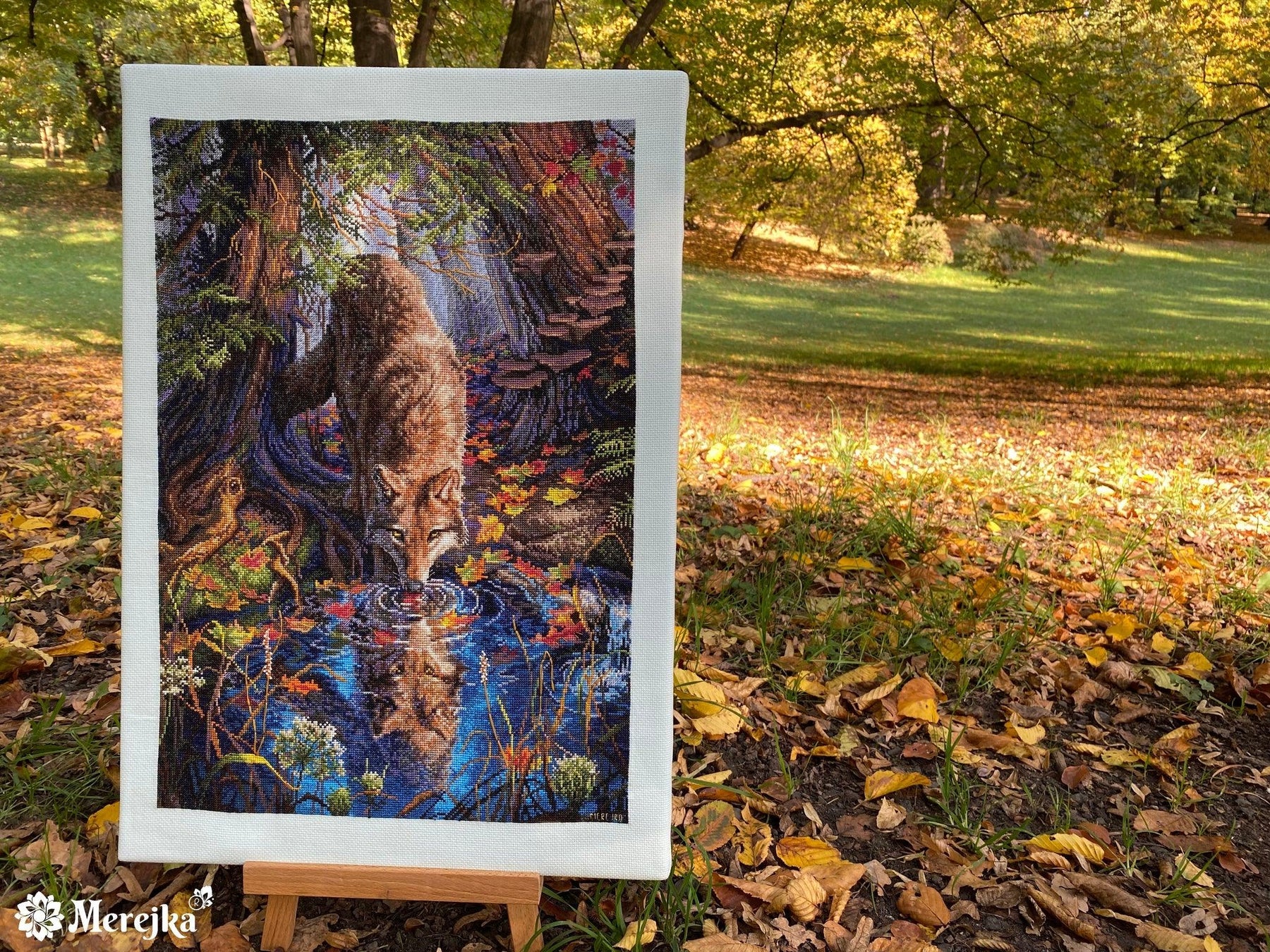 Kit contains: Canvas Zweigart Aida 16, ice blue, DMC threads 42 colors, John James needles. The schema has colour symbols. There are two versions of schema with and without backstitches in each kit. Dimension 32,5x48 cm / 12,8x18,9 inches